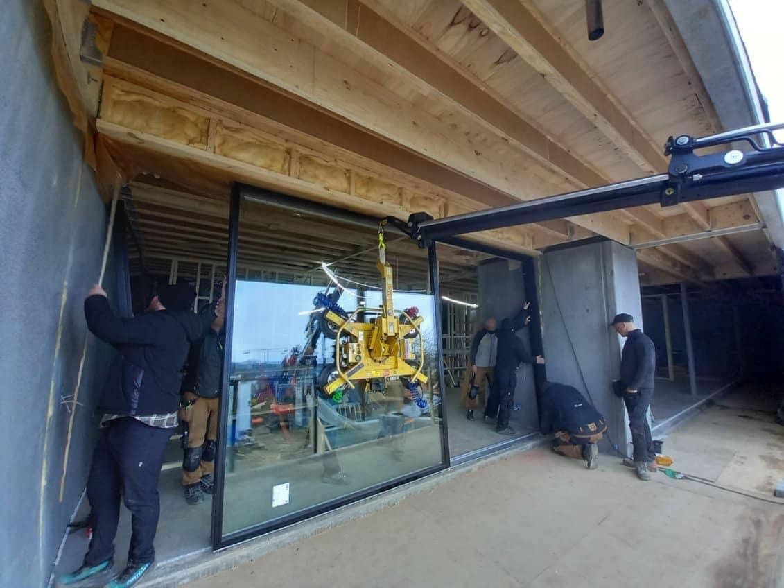 For nylig var vi i Klampenborg med vores 110 t/m kran og monterede større glaspartier. Her var kombinationen af kran og vakuumsug en praktisk løsning, der gjorde monteringen nem og sikker.